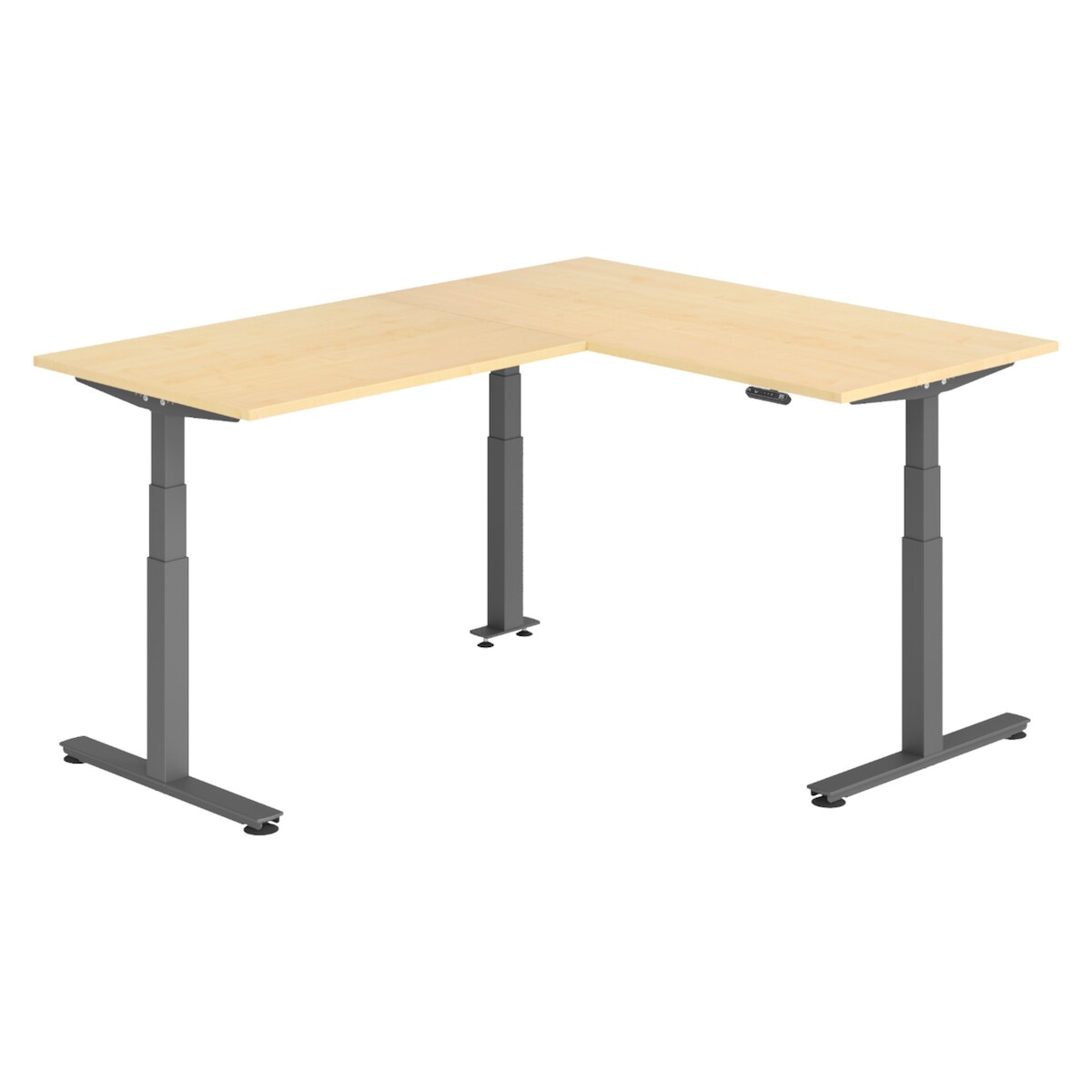 bümö Eckschreibtisch elektrisch höhenverstellbar L-Form: 160 x 200 cm in Ahorn, Gestell graphit - Stehschreibtisch mit Memory-Steuerung, elektrischer