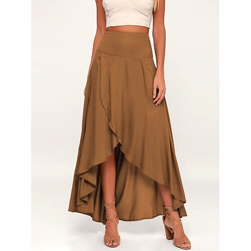 Per donna Gonna Linea A Moda Casual Maxi Vita Alta Gonne Semplice Volant Micro-elastico Streetwear Quotidiano Vinaccia Nero Rosa Marrone Primavera Poliestere