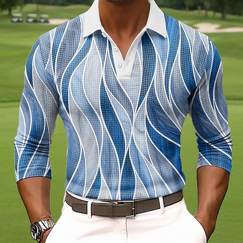 Per uomo Geometrico Linea Magliette Polo a Nido d'Ape Manica Lunga Magliette polo Camicie con Colletto Business Casual Affari Abbigliamento da lavoro Abbigliamento quotidiano Bottoni Primavera