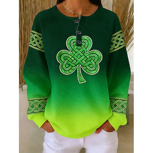 Felpa da donna per il giorno di San Patrizio Grafica Quadrifoglio Calda Casual Stampa Maniche Lunghe Girocollo Top Regolari Casual Strada Usura Quotidiana Stampa Bottoni Verde Primavera