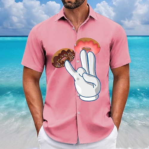 Per uomo Novità Divertente Ciambelle Camicia Camicia hawaiana estiva Camicia con Bottoni Manica Corta Hawaiano Resort Vacanza Ferie Abbigliamento mare Estate Primavera Collo ripiegato Stampa 3D