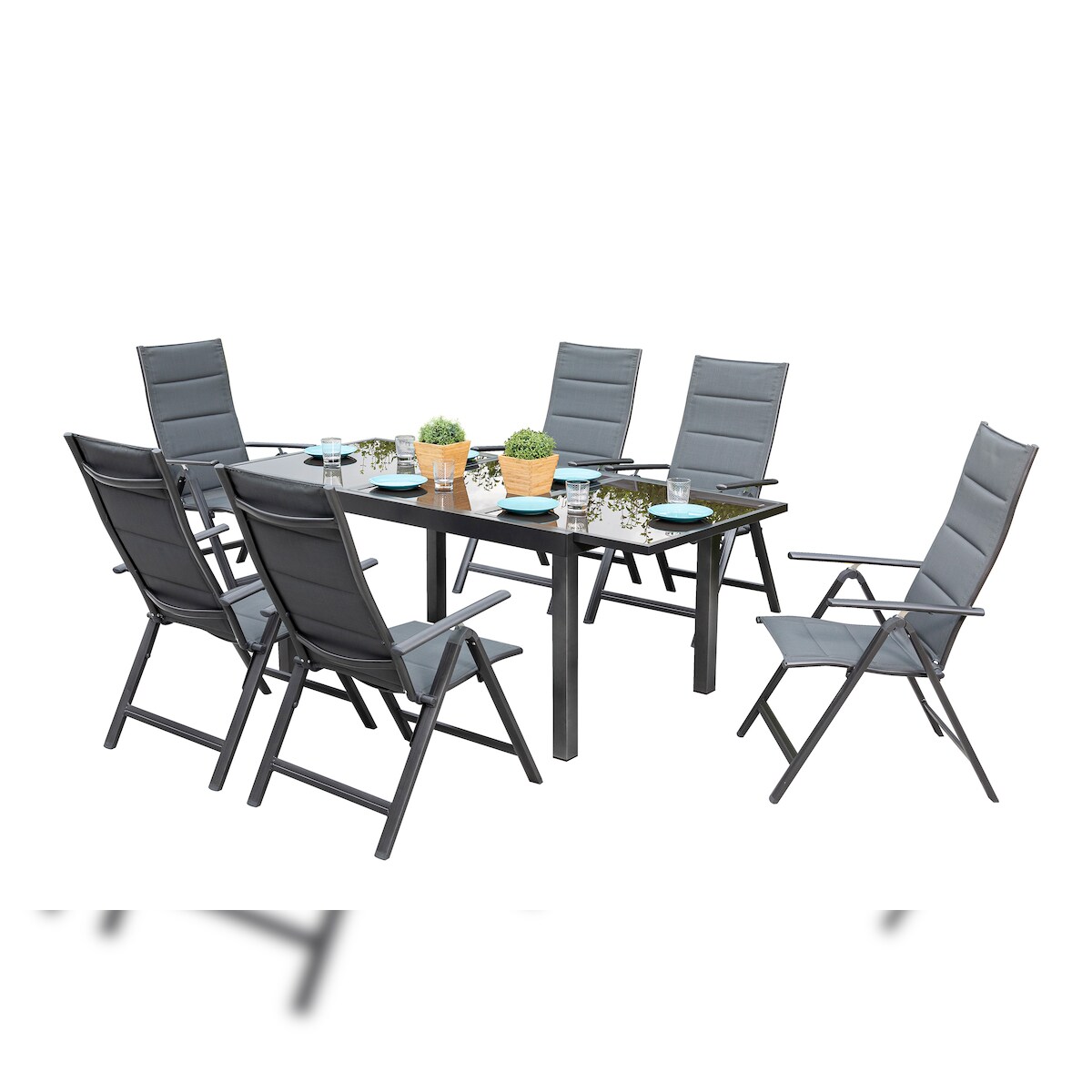 Merxx Taviano Set 7tlg.. Tisch 160 (220)x90. Graphit/Grau