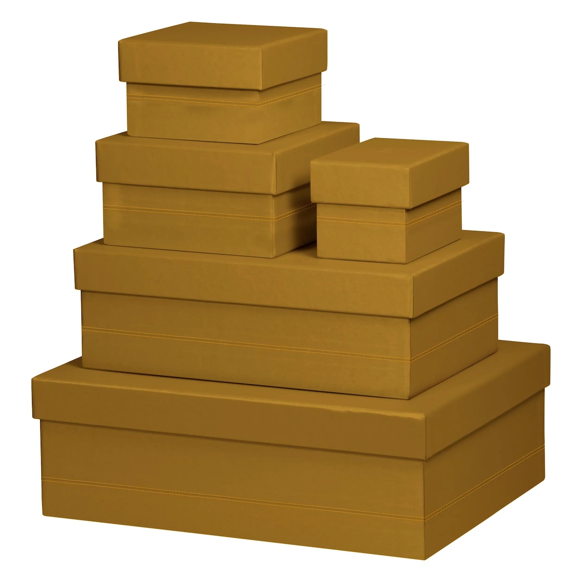 Rhodiarama Set mit 5 ineinander schachtelbaren Boxen aus Kunstleder, 44x34x16cm - Gold 194553C