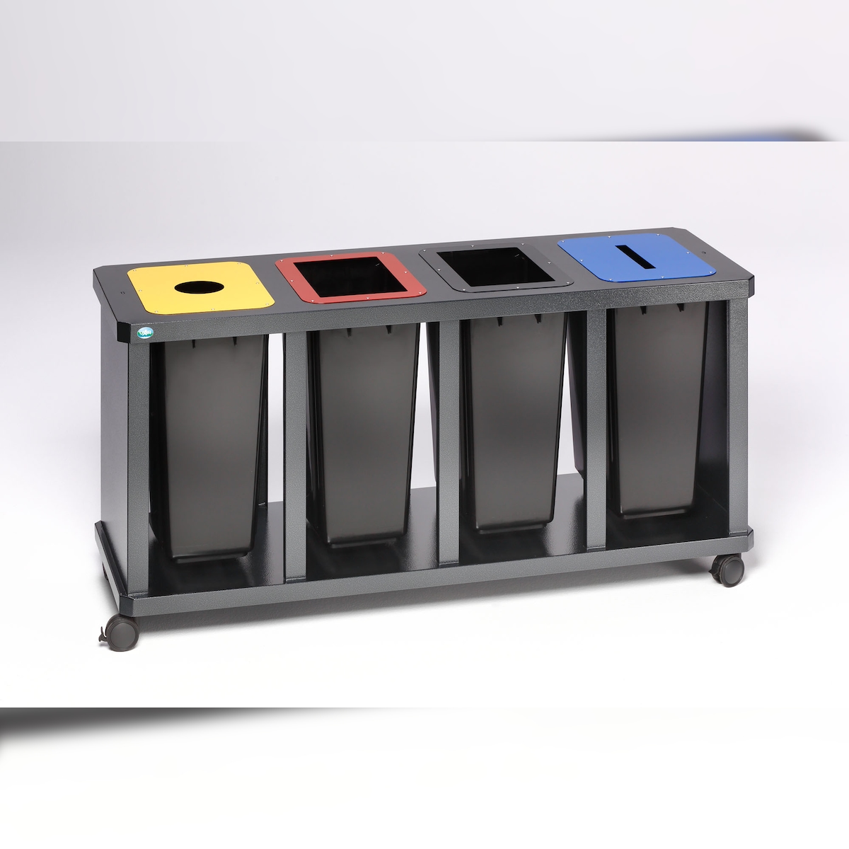 PROREGAL Robuste Wertstoffsammelstation 4-Fach mit Behälter | 58 Liter, HxBxT 67x157x52cm | Verzinkter Stahl | Grau | Mülleimer Abfalleimer Müllkorb
