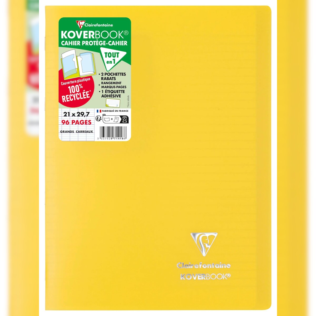 Clairefontaine 10x Koverbook, Heft A4, 48 Blatt 90g, französische Lineatur Seyès, Einband aus opakem Polypropylen, 100% recycelt - Gelb 971416C