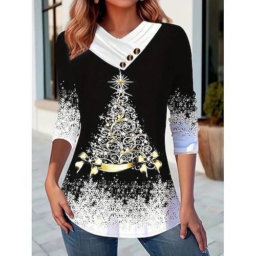 T-Shirt da donna per il giorno di San Patrizio Grafica Quadrifoglio Moda Elegante Classico Maniche Lunghe Girocollo Collo Rotondo Top Regolari Quotidiani Stampa Fine Settimana Nero Bianco Verde