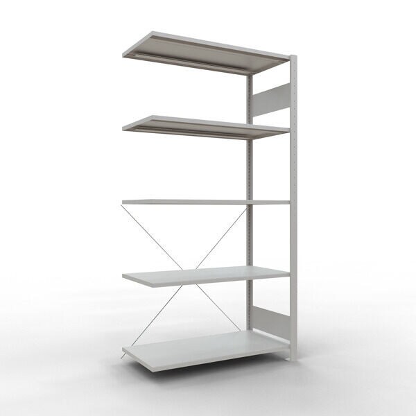 SCHULTE Lagertechnik Anbauregal, Eckregal (Feld C) 2000 x 1000 x 500, 5 Fachböden, Kreuzstrebe, RAL 7035 lichtgrau