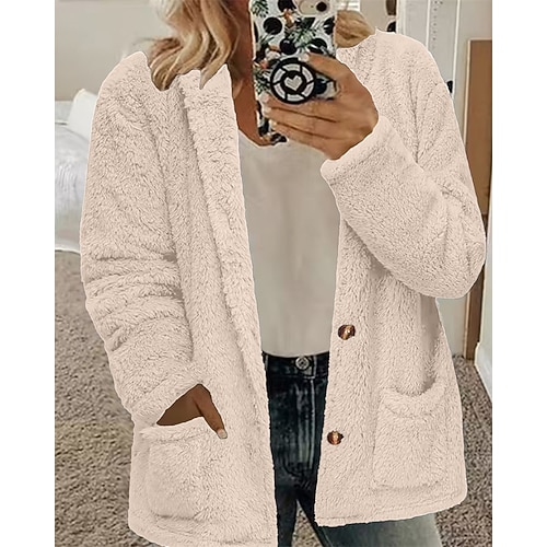 Per donna Cappotto Invernale Cappotto Teddy Caldo Confortevole Tasca Bottoni Elegante Moda Pelliccia Classico Semplice All'aperto Vacanza Casa Streetwear Regolare Senza colletto Vestibilità comoda