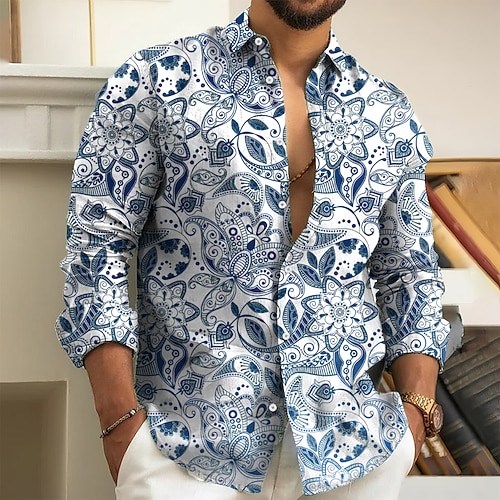Per uomo Paisley Stampa Floreale Etnico Camicia Camicia con Bottoni Manica Lunga Vintage Retrò Ferie Casual Quotidiano Primavera Autunno Collo ripiegato Stampa 3D camicie con colletto Blu Viola Oro