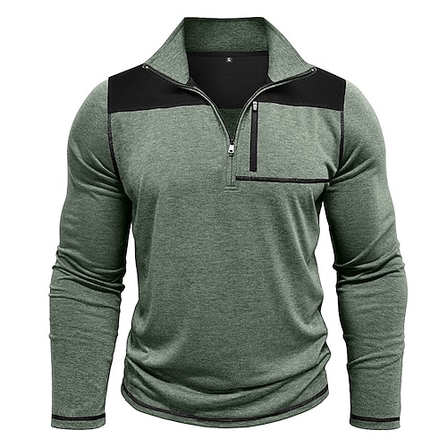 Per uomo POLO Polo con zip a un quarto Ufficio Da tutti i giorni Bavero Manica lunga Di tendenza Comodo Liscio Tasche Zip Up Estate Primavera Standard Giallo Blu marino Grigio scuro Verde militare