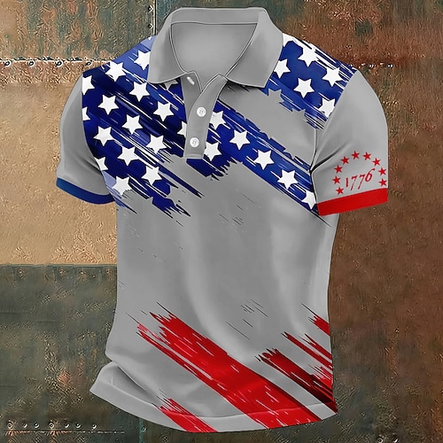Giorno dell'Indipendenza Americana Per uomo Bandiera Americana Polo Manica Corta Magliette polo Bavero Casual Athleisure Abbigliamento quotidiano Abito da festa Stampa 3D Bottoni Estate Blu Nero