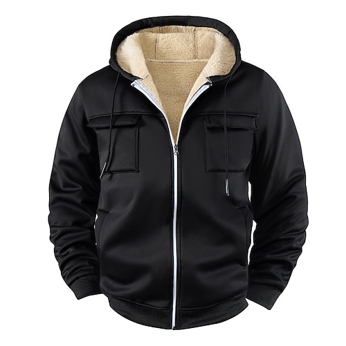 Da uomo Giacca in Pile Giacca con Cappuccio Casuale Calore Termico Giacca a Vento Tasca Pile Inverno Tinta unica Abbigliamento da lavoro Con Cappuccio Regolare Nero Blu marino Marrone Giacca