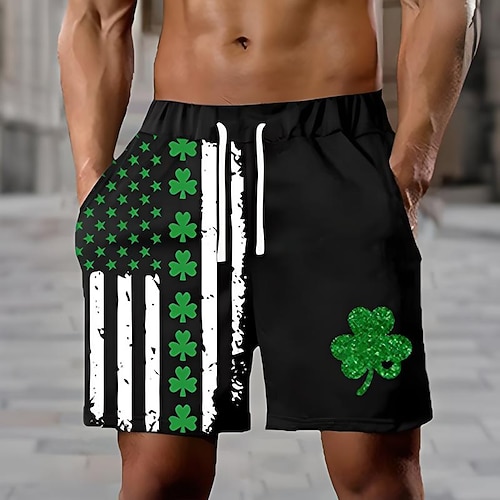 Festa di San Patrizio Per uomo Quadrifoglio Bandiera degli Stati Uniti Costumi da bagno Pantaloncini da mare Pantaloncini da Surf Misura del girovita medio Vacanza Hawaiano Stile Resort Vacanza Ferie