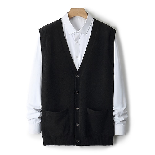 maglione cardigan da uomo in pura lana e cashmere di alta qualità, scollo a V, classico, lavorato a maglia, con tasche e bottoni, tinta unita, morbido, caldo e traspirante.