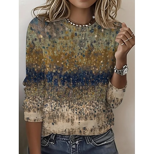 Per donna Maglietta Grafico Astratto Vintage Moda Elegante Manica Lunga Girocollo Top Regolari Quotidiano Weekend Stampato Marrone Estate Primavera Autunno