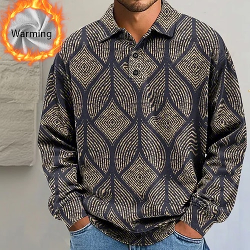 Per uomo Blocco di colori Geometrico Polo Camicie termiche Manica Lunga Magliette polo Bavero Casual Athleisure Ferie Abbigliamento quotidiano Stampa 3D Primavera Autunno Inverno Blu Rosa Viola