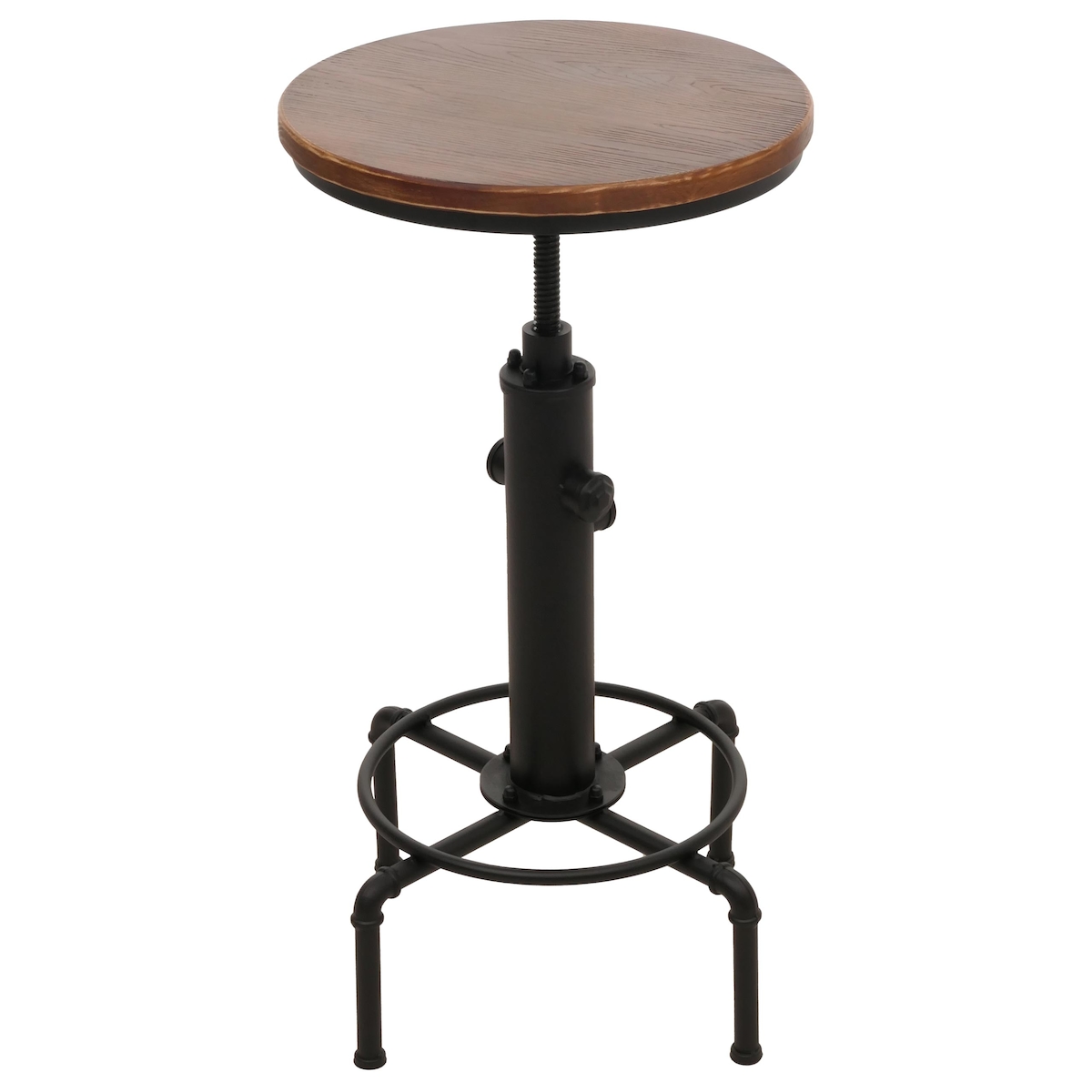 Mendler Bartisch HWC-N23, Thekentisch Bistrotisch höhenverstellbar drehbar Fußablage Industrial Eisen Massiv-Holz Ø 50cm ~ braun
