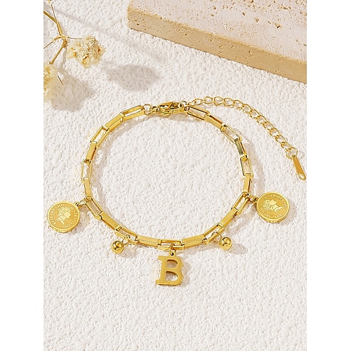 Bracciale da donna placcato in oro con lettere dell'alfabeto, ciondoli a forma di moneta e pallina, catena regolabile, elegante regalo di Natale per lei, accessorio di gioielleria personalizzato