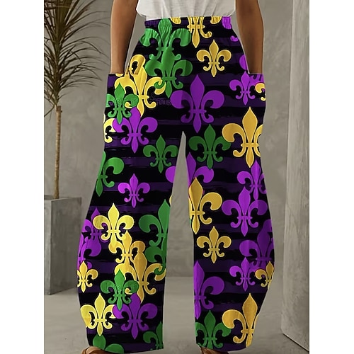 Pantaloni a gamba larga da donna Carnival Vintage Stile Etnico a lunghezza totale Vita Alta Pantaloni Graphic Gradient Pocket Vita Elasticizzata Stampa Comfort Traspirabilità Inelastica Casual