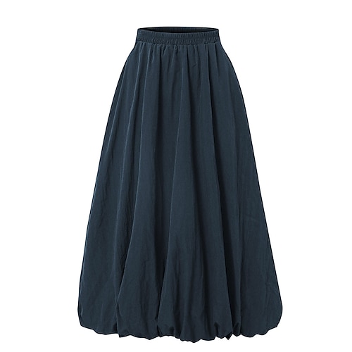 Per donna Gonna Moda Casual Midi Vita media Gonne Semplice Arricciato Tasca Micro-elastico Quotidiano Streetwear blu navy Bianco Rosa Vino Estate Nylon Poliestere