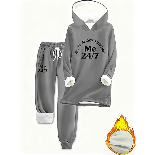 Per donna Caldo Quotidiano Set da due pezzi Tuta Set di Pantaloni Manica Lunga Con Cappuccio Grafico Lettera Coulisse Stampato Casuale Quotidiano Nero Rosa Rosa scuro Autunno Vestibilità comoda