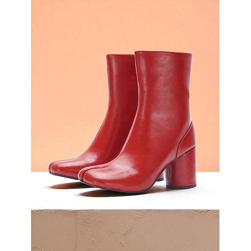 stivali da donna in similpelle marrone tabi a metà polpaccio - stivaletti con punta divisa e tacco spesso con cerniera laterale, stile moderno minimalista per eventi di moda, abbigliamento casual e