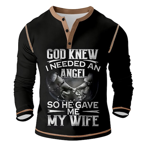 Per uomo Grafico Vintage Maglia Henley Maglietta Manica Lunga Vintage Moda Designer Casuale Quotidiano All'aperto Primavera Primavera Autunno Tutte le stagioni Nero Henley Maglietta Henley