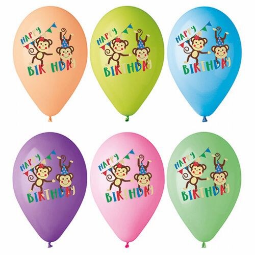 Papstar 72 Luftballons Ø 29 cm farbig sortiert `Monkey Birthday` Dschungel Safari