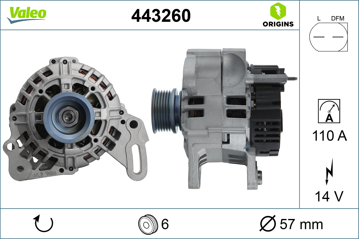 VALEO Generator NEUTEIL 443260 14V 110A für VW 36903024 036903024X 036903024