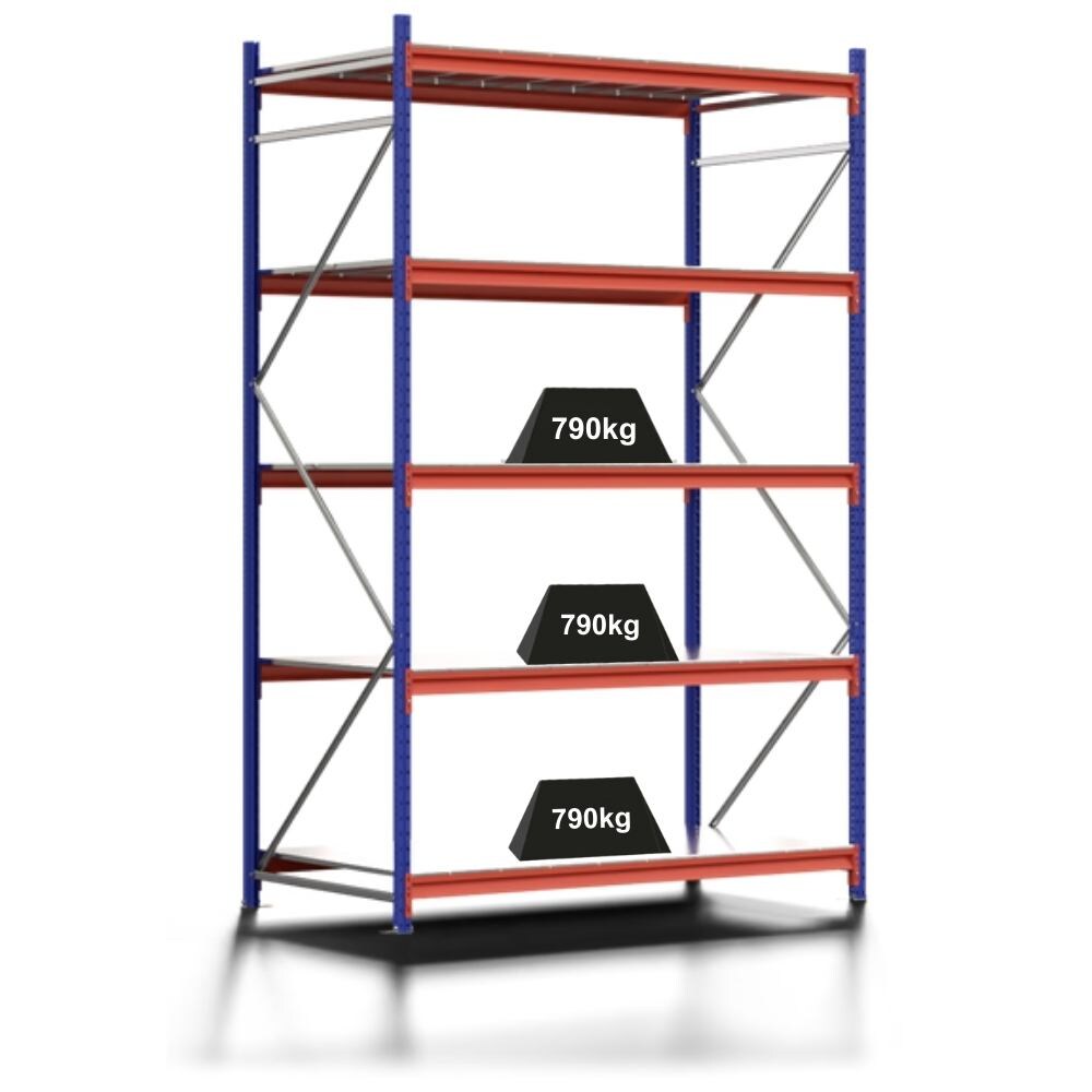 PROREGAL Weitspannregal MOOSE Stecksystem Omega-Profil, Grundregal, HxBxT 300x185x100cm, 5 Ebenen, Spanplatten-Fachboden, Fachlast 790kg, Blau/Orange