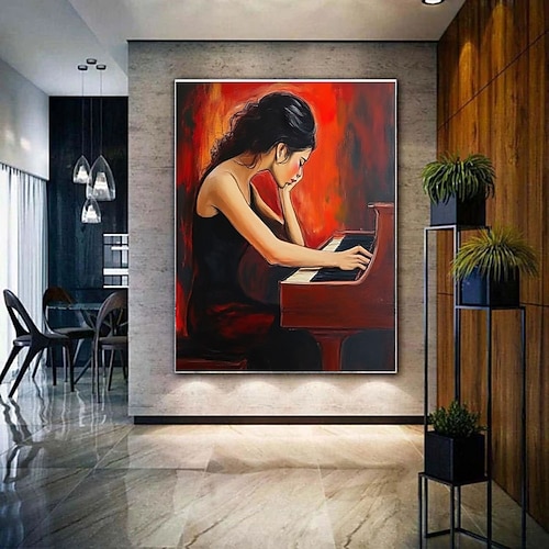 dipinto a mano enigmatico pianista dipinto a olio arte murale dipinto ragazza ballerina rossa dipinto arte astratta su tela donna che suona il pianoforte arte murale contemporanea decorazione