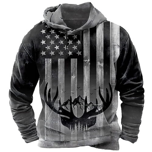 Per uomo Bandiera Americana Cervo Felpa con Cappuccio Felpa Moda Classico Manica Lunga Girocollo All'aperto Caccia Nero Rosso Viola Coulisse Autunno Inverno progettista S M L XL XXL XXXL