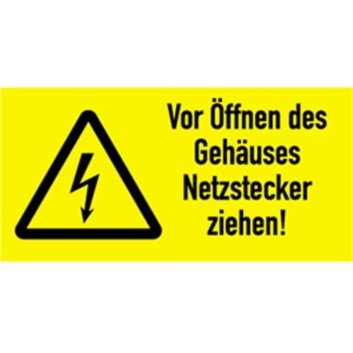 Aufkleber Vor Öffnen des Gehäuses Netzstecker ziehen!, Kombischild, Folie, 105x52 mm