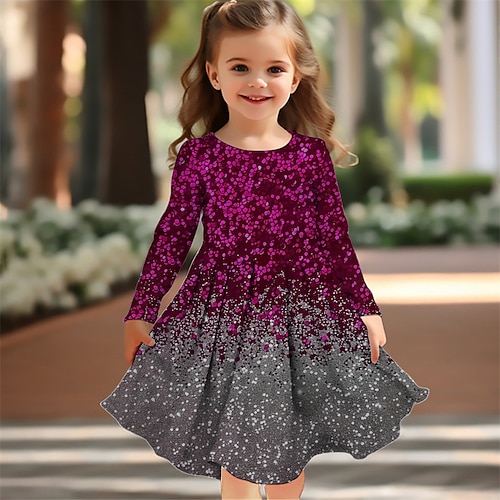 ragazze' 3D Grafico Abito Manica Lunga Estate Primavera Vacanza Quotidiano Ferie Principessa Bello Dolce Bambini 4-12 Anni Vestito Casual Abito a trapezio Lunghezza al ginocchio Vestibilità regolare