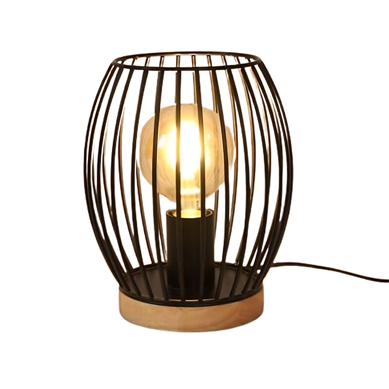 Goeco Tischlampe aus schwarzem Metall E27 Käfig 21CM Dekorative Nachttischlampe mit Schalter für Schlafzimmer Wohnzimmer (Ohne Leuchtmittel)