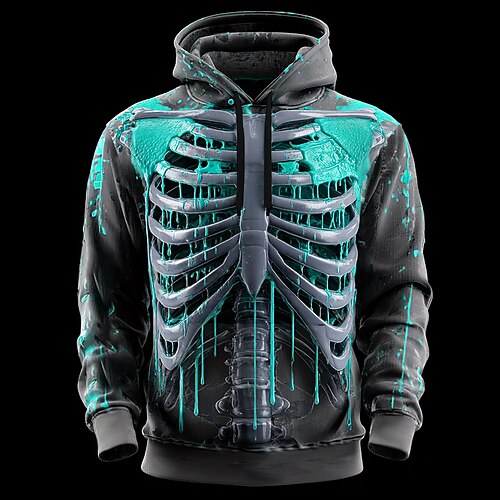 Per uomo La Morte 3D Scheletro Felpa con Cappuccio Felpa Punk Esagerato Gotico Casual Manica Lunga Girocollo Con Cappuccio Club Abbigliamento casual alla moda Rosso Blu Coulisse Autunno Inverno
