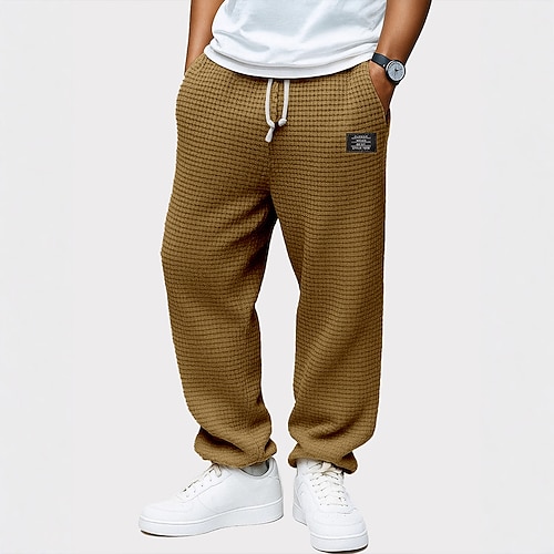 Per uomo Nido d'ape Pantaloni da tuta Pantaloni Pantaloni Larghi Pantaloni casual Coulisse Gamba Dritta Tinta unica Comodità Lunghezza intera All'aperto Casuale Quotidiano Moda Retrò Vintage