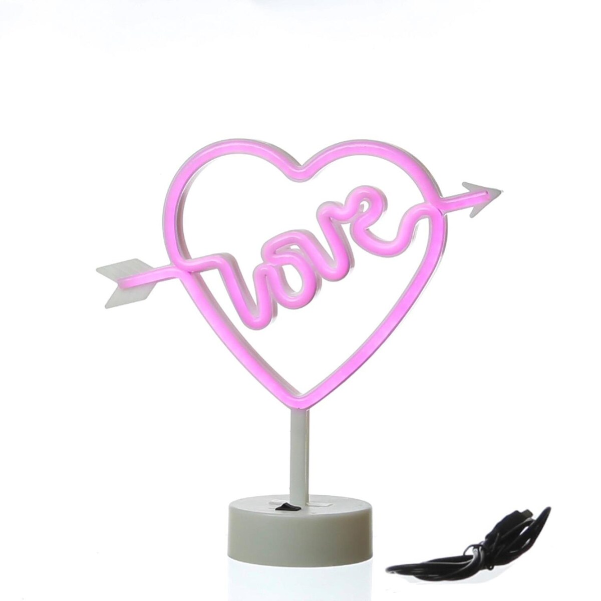 SATISFIRE LED Neonlicht LOVE pinkes Herz mit Pfeil Neonschild USB Batterie 25cm