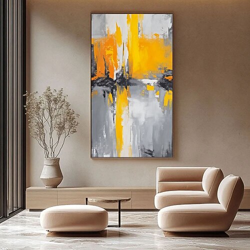 dipinto a olio fatto a mano moderno astratto su tela dipinto acrilico astratto giallo nero dipinto grigio bianco quadro da parete extra large arte da parete per soggiorno