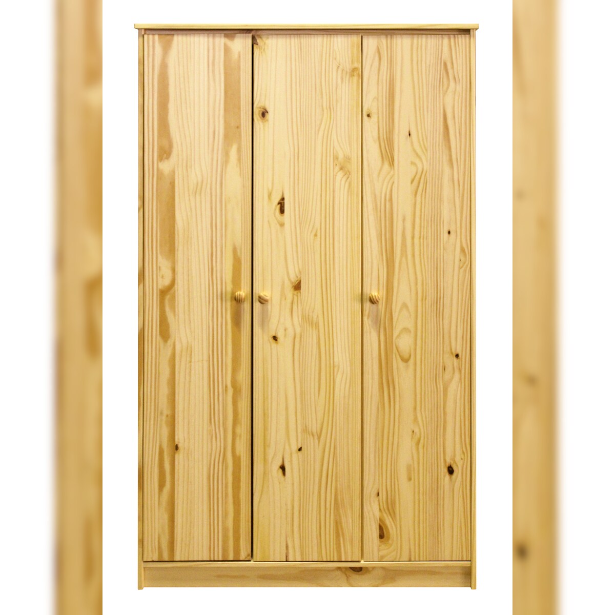 Möbilia Kleiderschrank | mit 3 Türen | Kiefer-Holz massiv | naturfarben lackiert | B 107 x T 50 x H 175 cm | 19020063 | Serie SCHRANK