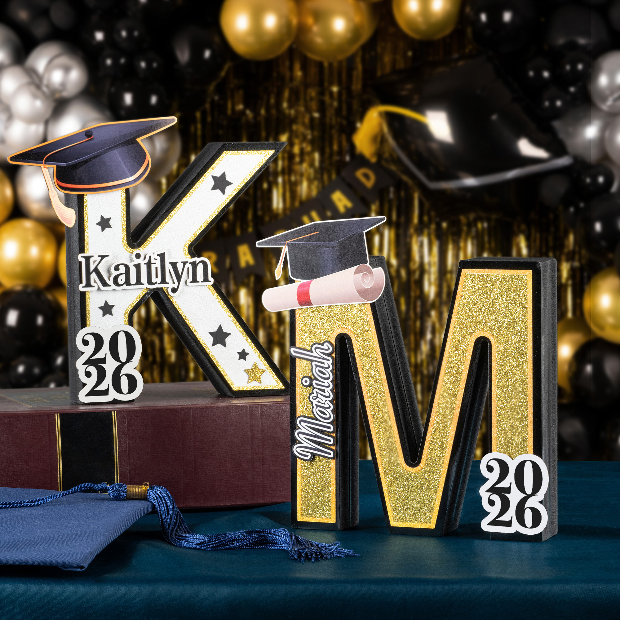 Cappello di laurea personalizzato Segno del nome della lettera stampato in 3D con l'anno Decorazione da scrivania della festa Regalo di apprezzamento per i diplomati