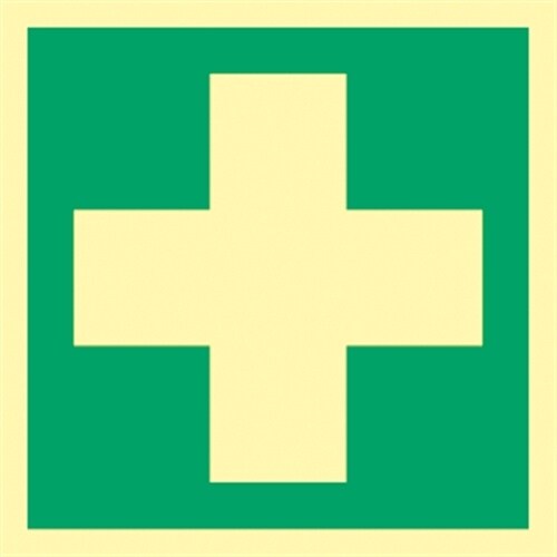 Aufkleber Erste Hilfe, ISO 7010, Folie, langnachleuchtend, 160-mcd, 148x148 mm