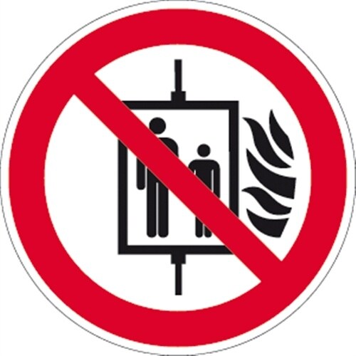 Aufkleber Aufzug im Brandfall nicht benutzen ISO 7010, Folie, Ø 100 mm