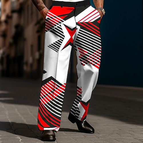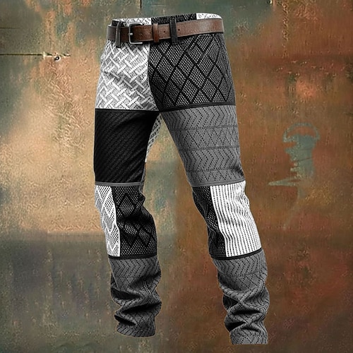 Per uomo Geometrico Blocco di colori Patchwork Pantaloni Pantaloni Eleganti Pantaloni da Abito Misura del girovita medio Casual All'aperto Vacanza Pantaloni slim fit con tasche Primavera Autunno