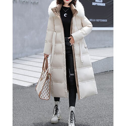 Per donna Cappotto Invernale Giacca Piumino Giacca con Cappuccio Caldo Confortevole Cerniera Tasca Casual Blocco di colori All'aperto Vacanza Casuale Ferie Lungo Con Cappuccio Vestibilità regolare