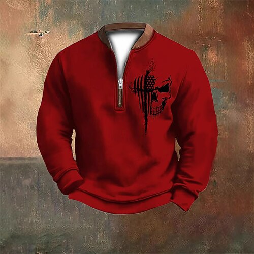 Per uomo Maglia Felpa con zip corta Nero Bianco Rosso Blu marino Grigio Mezza zip Blocco di colori Teschio Bandiera Americana Mezza cerniera Stampato Quotidiano Sport Outdoor Ferie Poliestere
