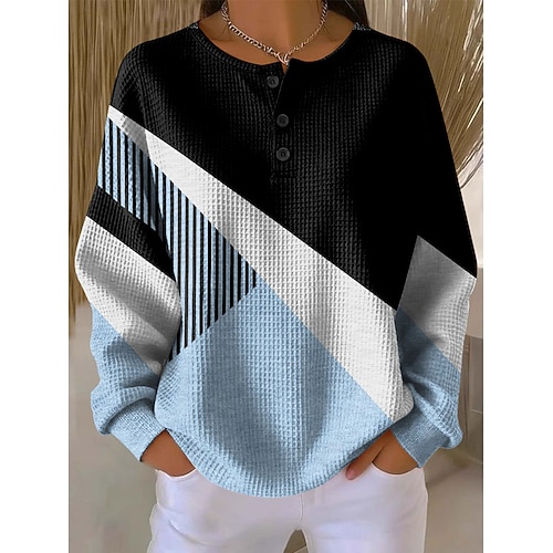 Per donna Maglietta Blocco di colori Classico Casual Manica Lunga Girocollo Top Regolari Quotidiano Uscire Weekend Patchwork Nero Rosa Marrone chiaro Verde Grigio chiaro Autunno Inverno