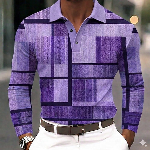 Per uomo Blocco di colori Polo Manica Lunga Magliette polo Bavero Business Casual All'aperto Athleisure Abbigliamento quotidiano Stampa 3D Bottoni Primavera Autunno Blu Viola Marrone