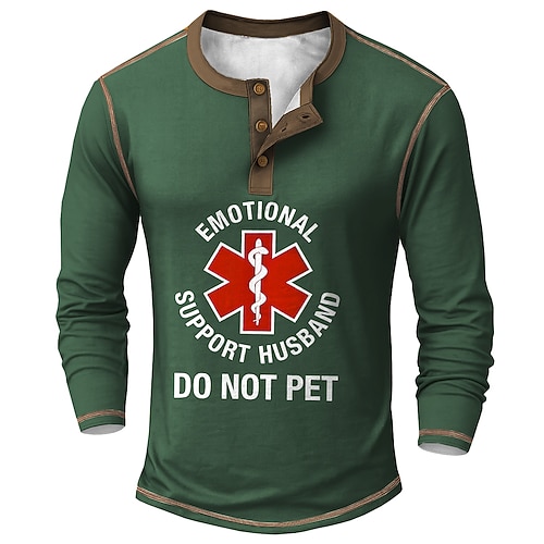 Maglietta Henley a maniche lunghe divertente per uomo - Marito di supporto emotivo non accarezzare maglietta grafica