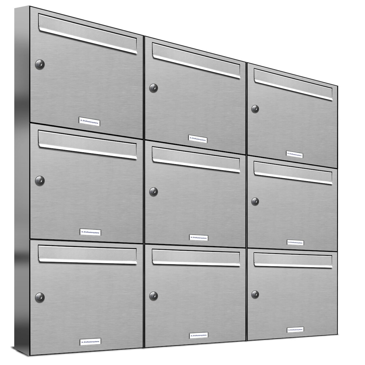 AL Briefkastensysteme 9 Fächer Premium Edelstahl Wand Briefkasten Anlage für Post A4, modern, robust und wetterfest, Artikelnummer: 331T9EA3